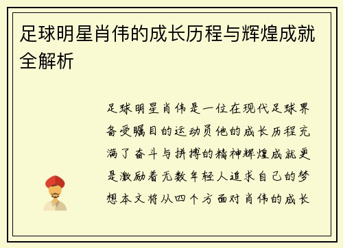 本文旨在探讨毛彪在足球界的地位与成就,分析其是否可以被称为足球明星。首先,我们将通过毛彪的职业生涯、技术能力、对球队和国家队的贡献以及其在公众形象和影响力方面进行全面分析。毛彪作为一名出色的运动员,其在比赛中的表现和成就无疑给他赢得了一定的声誉。然而,成为一个真正的足球明星,不仅需要卓越的个人能力,还需要在团队中的重要性及社会影响力。通过这四个方面的深入剖析,我们将揭示毛彪是否具备成为足球明星所需...